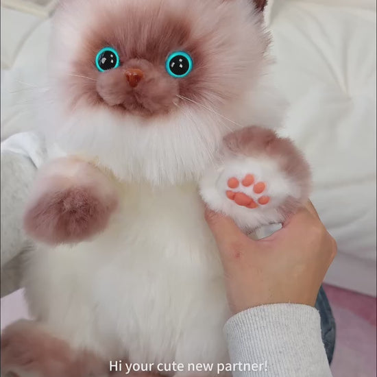 Realistic Design – Handmade to mimic the lifelike look of a fluffy cat, complete with soft fur, expressive eyes, and a plush tail.