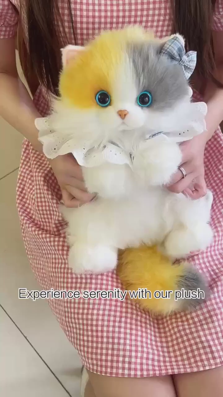 Realistic Design – Handmade to mimic the lifelike look of a fluffy cat, complete with soft fur, expressive eyes, and a plush tail.