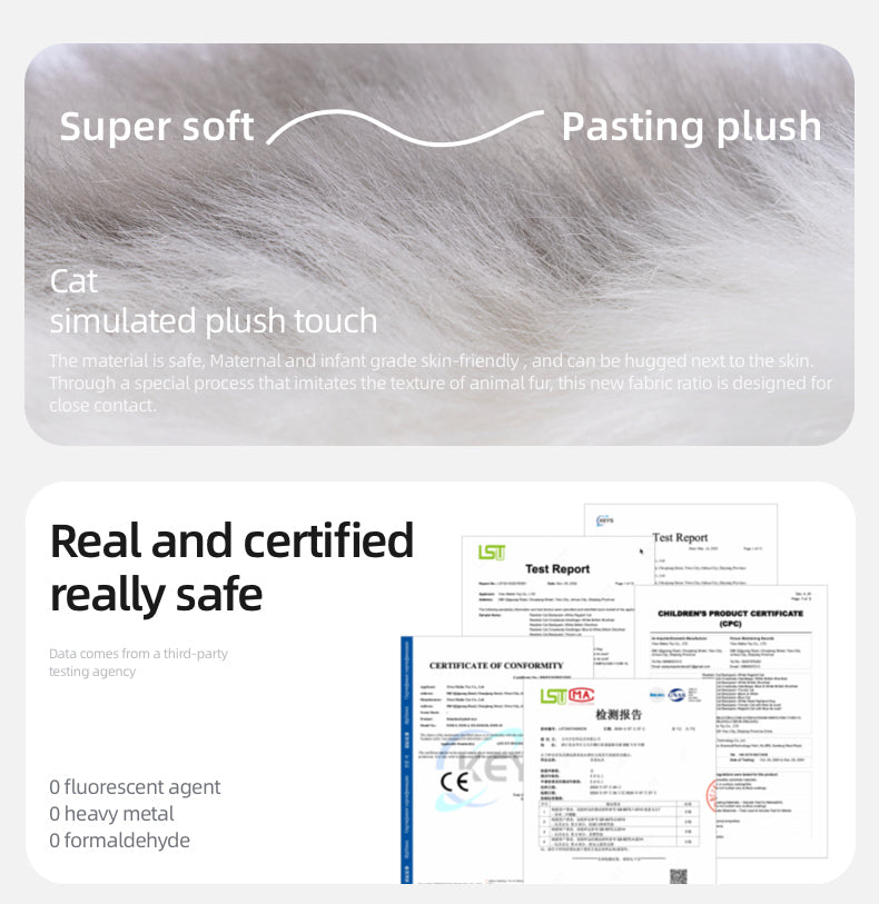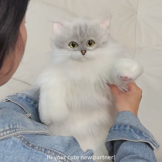 Realistic Design – Handmade to mimic the lifelike look of a fluffy cat, complete with soft fur, expressive eyes, and a plush tail.