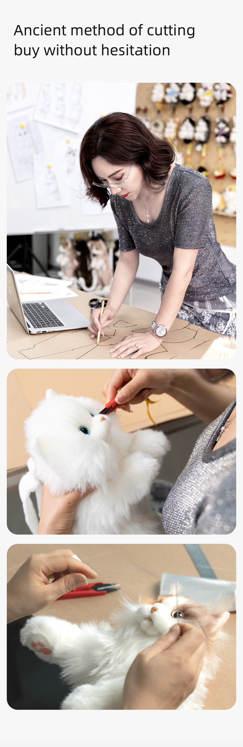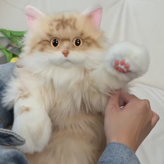 Realistic Design – Handmade to mimic the lifelike look of a fluffy cat, complete with soft fur, expressive eyes, and a plush tail.