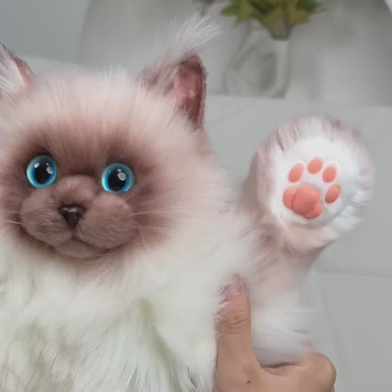 Realistic Design – Handmade to mimic the lifelike look of a Siamese Cat, complete with soft fur, expressive eyes, and a plush tail.