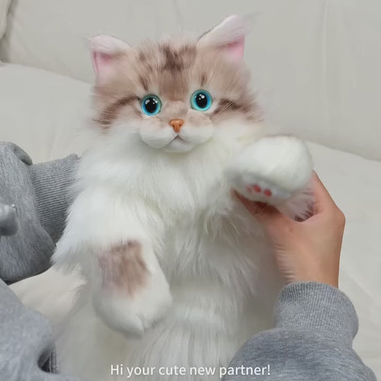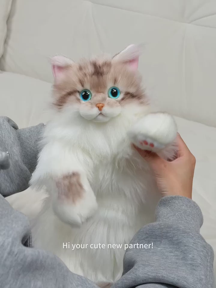 Realistic Design – Handmade to mimic the lifelike look of a fluffy cat, complete with soft fur, expressive eyes, and a plush tail.